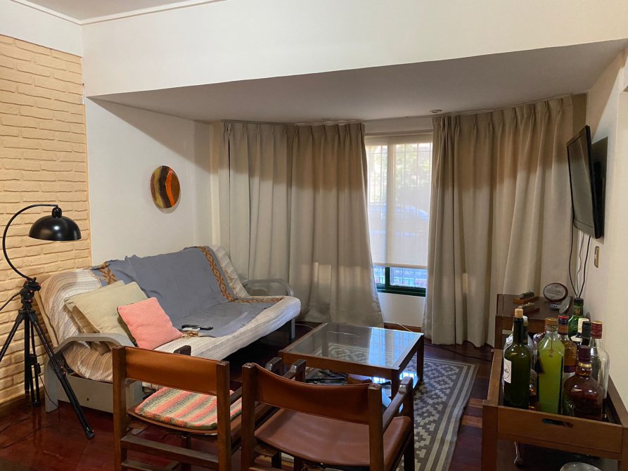 PB: living comedor amplio, cocina con isla, baño, 1 dormitorio, 1 ambiente.