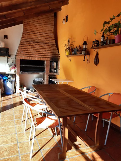 Pequeño patio con Quincho a lo ancho, con baño y parrilla.