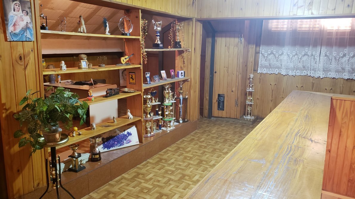 Jardin con pileta de fibra. Exelente Quincho a lo ancho del lote, el mismo cuenta con: