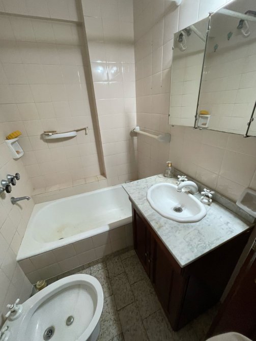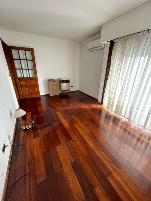 Living comedor de 4.50 x 3 aprox. con pisos tarugados, balcón de 2.50 x 1.50 mtrs.-2 dormitorios con placar, baño completo.