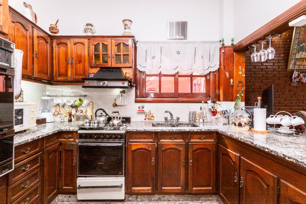 plastificado - Cocina con muebles bajo y sobre mesada, amplia área de